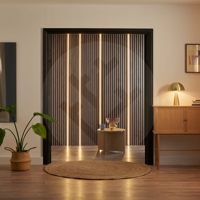The Acupanel® Glow is the perfect lighting companion for the Acupanel® acoustic wall panel range. Designed with seamless integration in mind, the Acupanel® Glow LED strip lights effortlessly enhance the beauty of your space with a touch of contemporary brilliance.