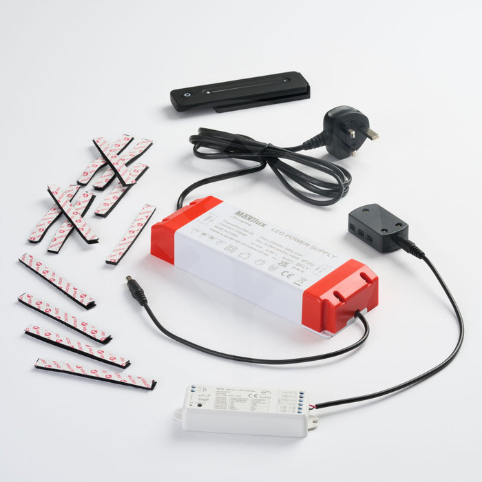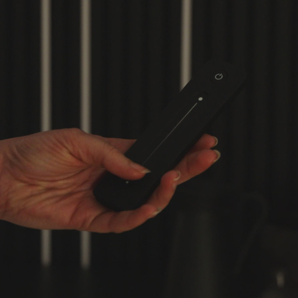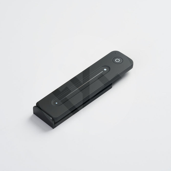 The Acupanel® Glow Remote is a sleek add-on to the LED light strips, offering a hand-held alternative to control the lights. Available in black, it features an attractive touch-slider for dimming the lights, with a magnetic stand to store it with ease.