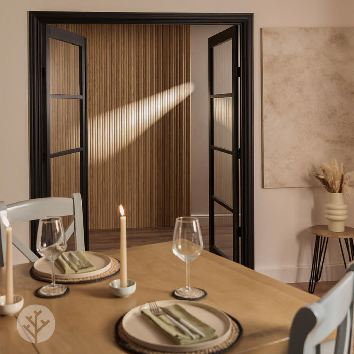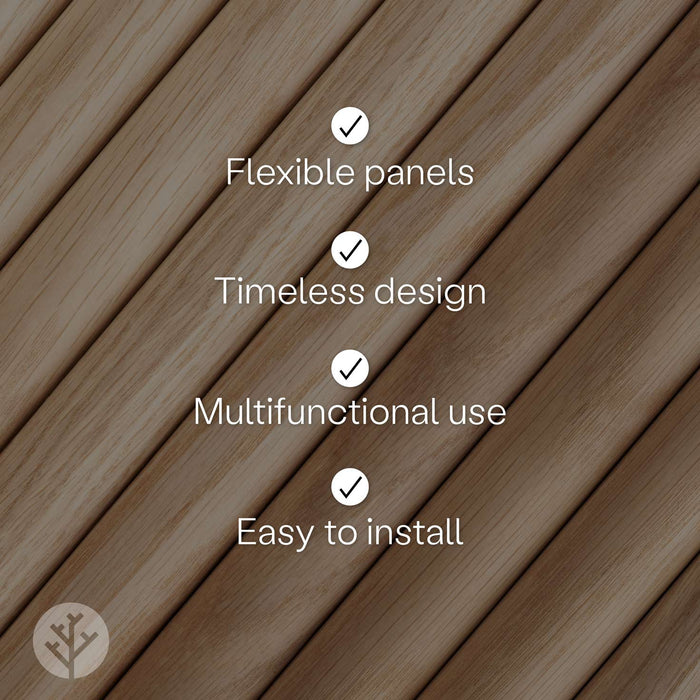 Please be aware that as of August 23rd 2024, when installing the panel on a curve, our new water-resistant fabric backing may be visible between the slats. For examples of how this may look, please contact our customer care team, who will be happy to provide you with up-to-date imagery.