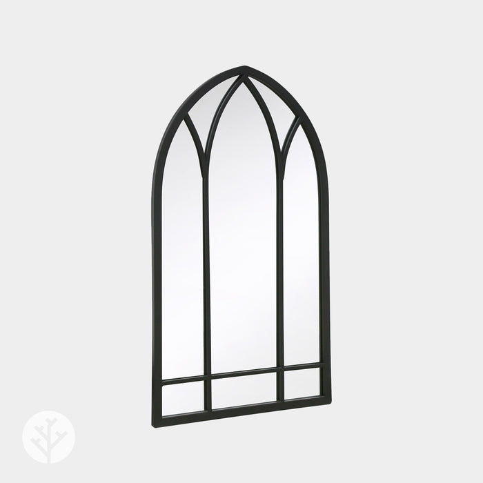 Featuring a gothic-inspired arch shape and detailing, this mirror adds a touch of the archaic to any setting. Available in a single size, with black and gold frame options, our Arched Gothic Mirror allows you to find the perfect fit for your home, office, and even outdoors. No matter the dimensions of your space, we have a size that will suit your needs and complement your design.