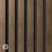 Each panel is finished with a metallic foil surface in carefully curated tones such as gold, aluminium and bronze. The surface has a gentle sheen and directional texture, creating a dynamic effect that responds beautifully to both natural and artificial light. Applied to black MDF slats and mounted on an acoustic felt backing, the result is a panel that delivers both visual presence and acoustic performance.