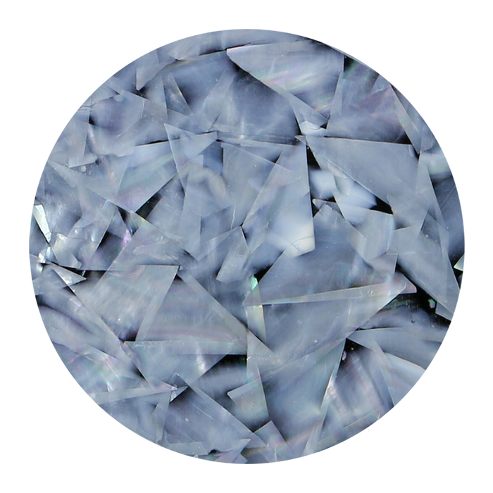 Genuine 100% shell veneer with natural Freshwater Mother of Pearl pieces chosen to reflect cool dark and white tones enhanced by a black backing. Gloss finish and opaque backing. Light and versatile. Approx. .3 mm thick, these AAA quality sheets are perfect for inlays into wood, metal or acrylic, as well as fashion and accessories. Used by luxury brands world wide. Sustainability and provenance guaranteed. Can be cut with sharp scissors, a Kraft knife or laser cutter.