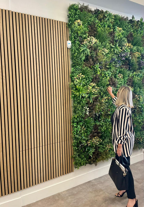 Monaco Artificial Green Wall Panel - features soft greens with a hint of pink, to create a relaxing, woodland feel.
