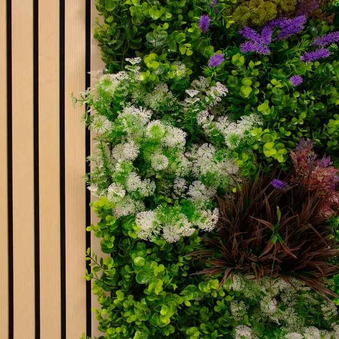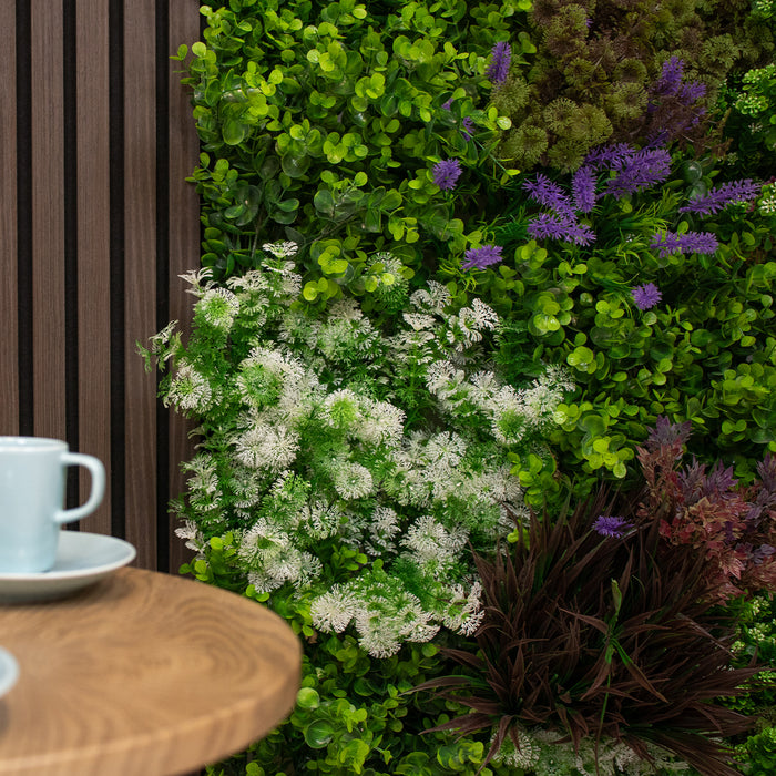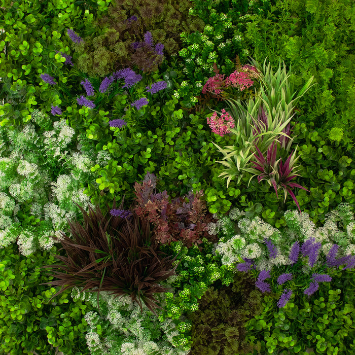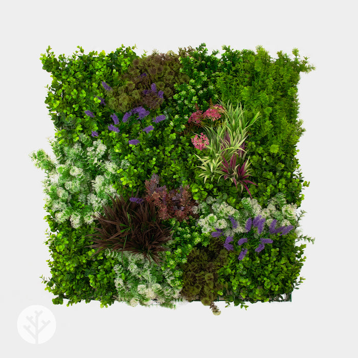 Nice Artificial Green Wall Panel - green with pink, lilac and white, our most colourful green wall panel.
