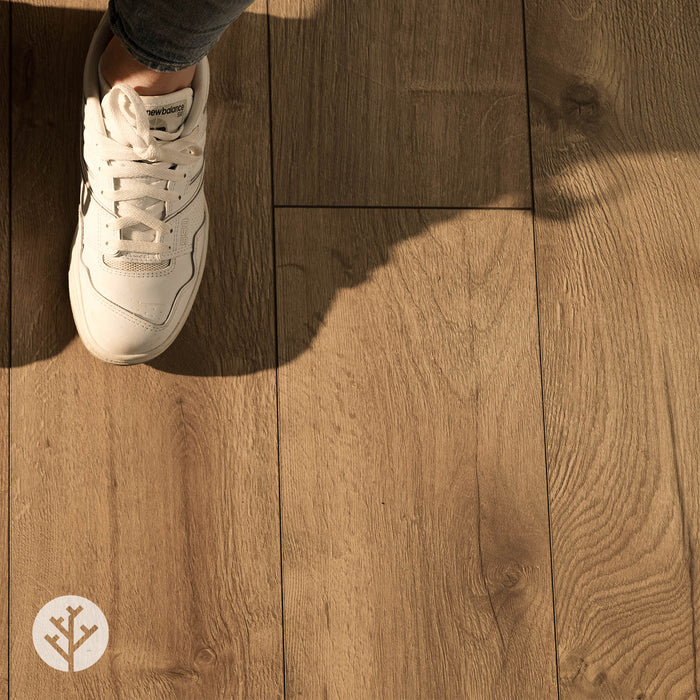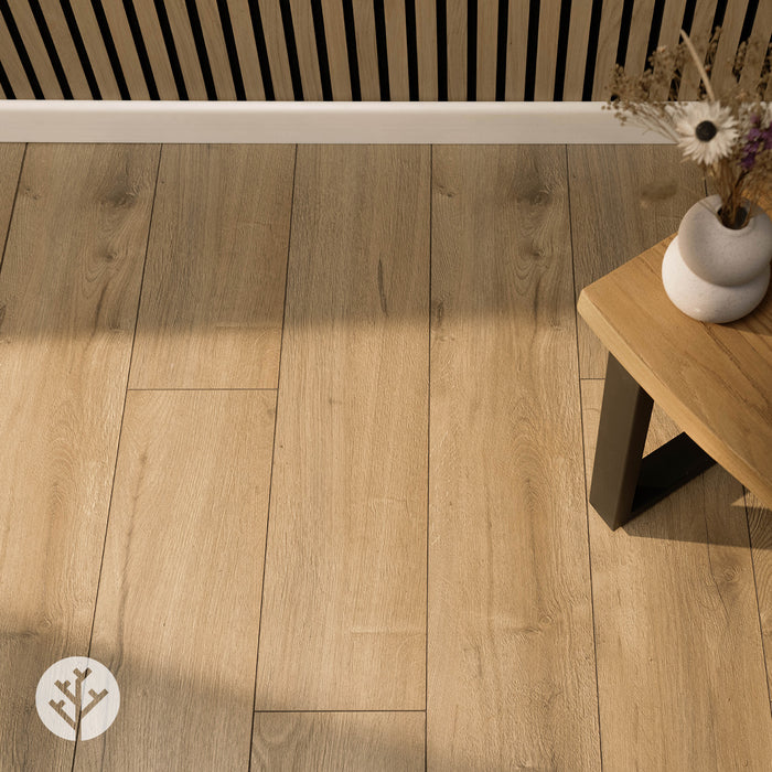 The wood-grain embossed laminate surface offers the look and feel of real wood, without the upkeep. Built for durability, it can withstand heavy foot traffic, making it perfect for busy areas in your home and workplace. As an eco-conscious option, our laminate flooring is made from responsibly sourced materials, supporting a more sustainably-friendly lifestyle. Its versatile design suits a range of spaces, and with a user-friendly click-and-lock system, installation is quick and simple.