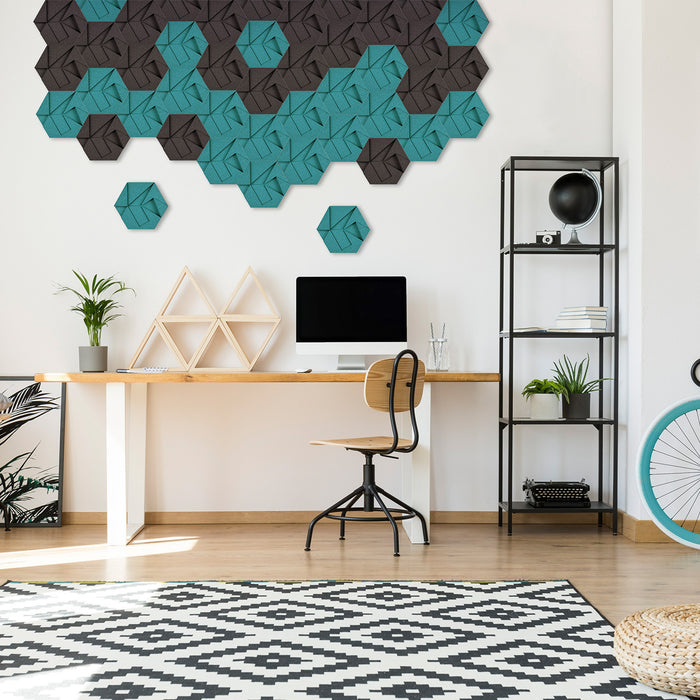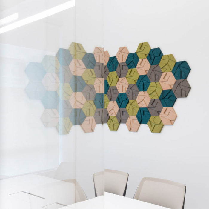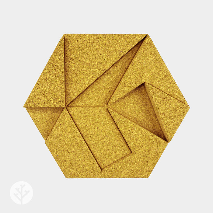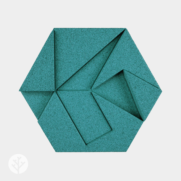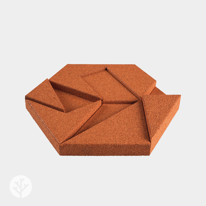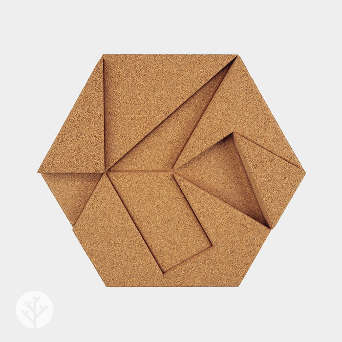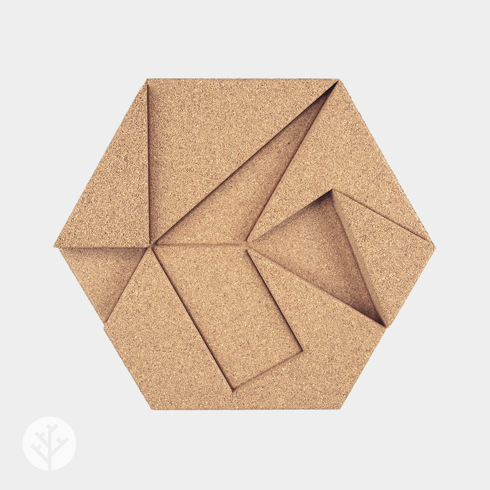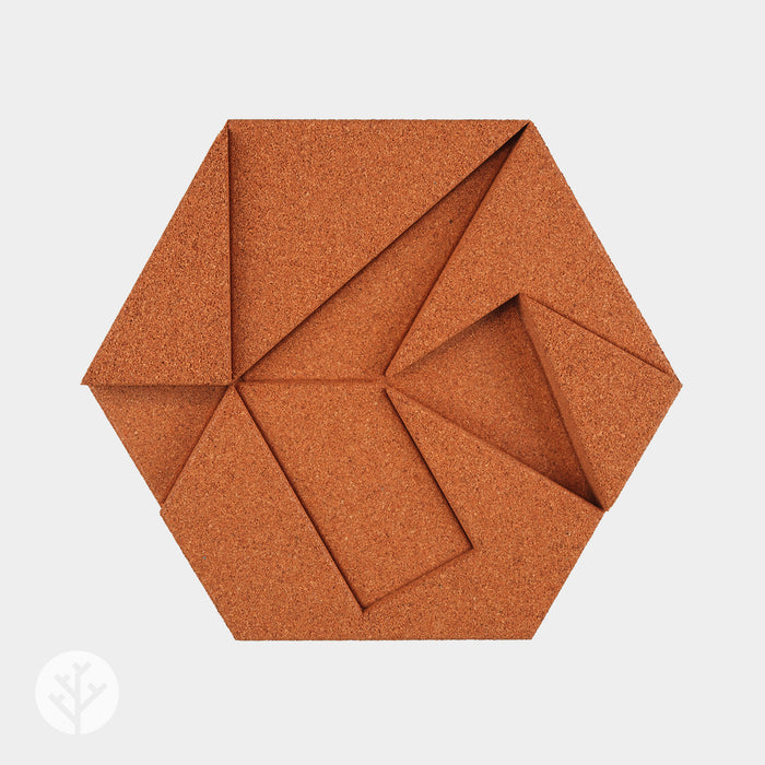 Much like the raw material cork, the Design Block Hexagon is a geometric shape inherent in nature, symbolizing communication, balance, and togetherness. This hexagonal design serves as an interface connecting each tile, fostering new interior shapes and culminating in a unique and harmonious result. Inspired by the natural harmony of geometric shapes, Hexagon seamlessly integrates into your space, creating an environment that resonates with balance and interconnected beauty.