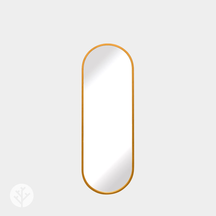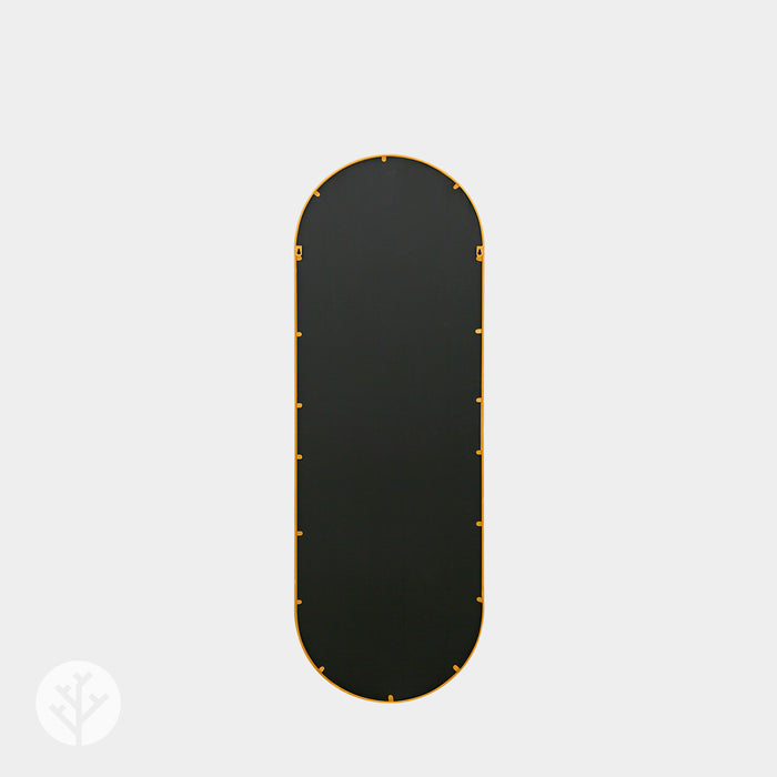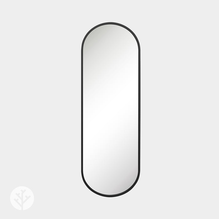 The classic, oblong, oval-like shape offers versatility and blends seamlessly with any design scheme. Whether you're decorating a contemporary living room, a minimalist bedroom, or a chic bathroom, this mirror effortlessly enhances the visual appeal of any space. This mirror is available in two different sizes, with two frame colours, ensuring you'll find the perfect fit for any room.